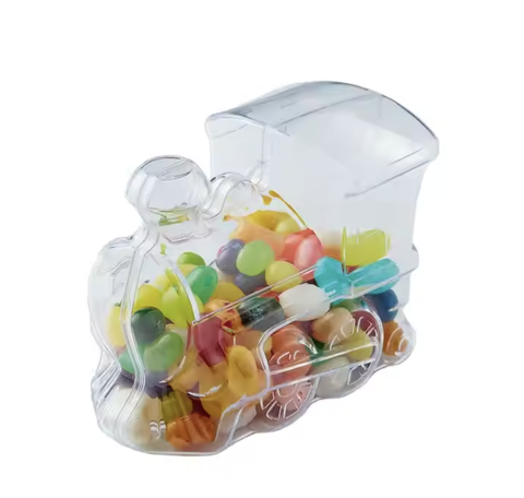 Caixa Plástica Transparente Reutilizável em Forma de Trem para Alimentos, Moldada por Injeção, para Uso na Cozinha, Decoração de Natal